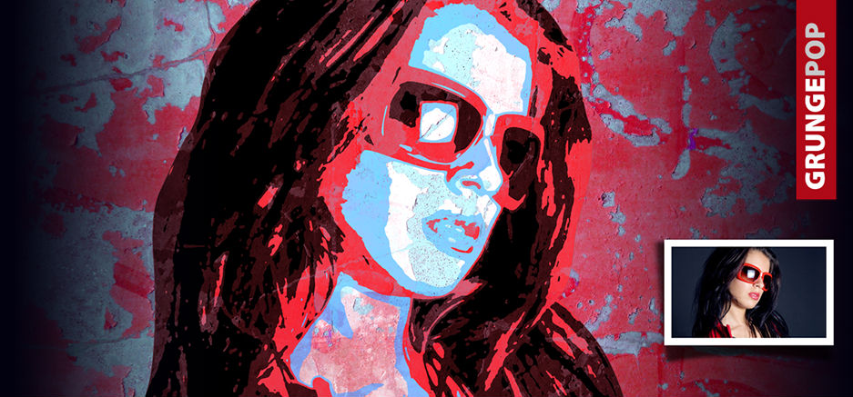 Wie beim ColorPop-Stil reduziert auf wenige Farben und Flächen zusätzlich an den Rändern und teilweise auf den Flächen mit einem Used-Look (Grunge) gestaltet.