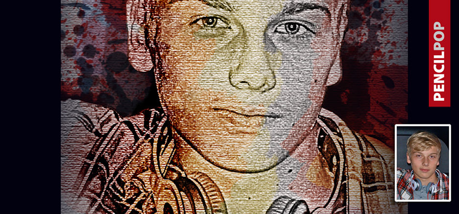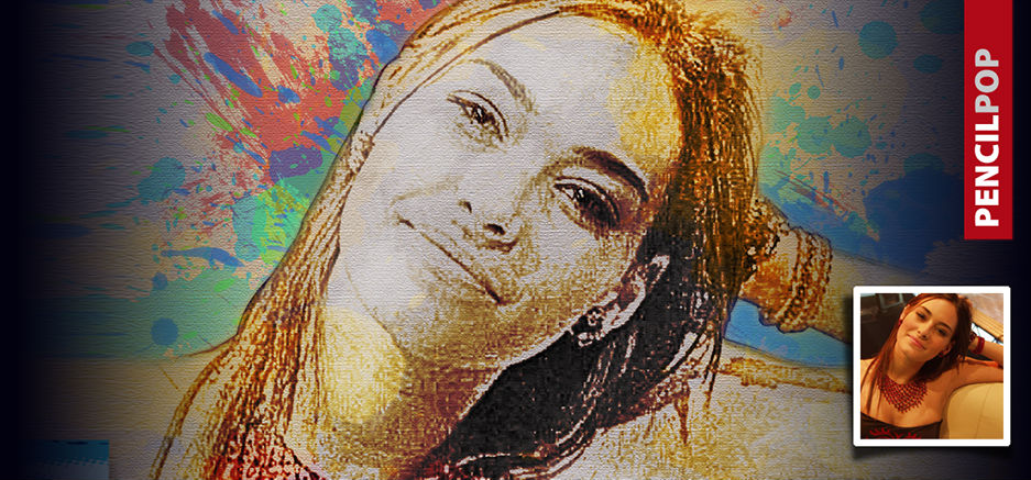 Portrait in Bleistiftzeichnungs-Optik aufgepimt durch verschiedene Pinseltechniken und Leinwandstruktur.