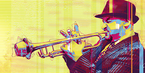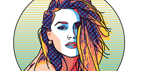 Wie beim ColorPop-Stil reduziert auf wenige Farben und Flächen zusätzlich an den Rändern und teilweise auf den Flächen mit einem Used-Look (Grunge) gestaltet.